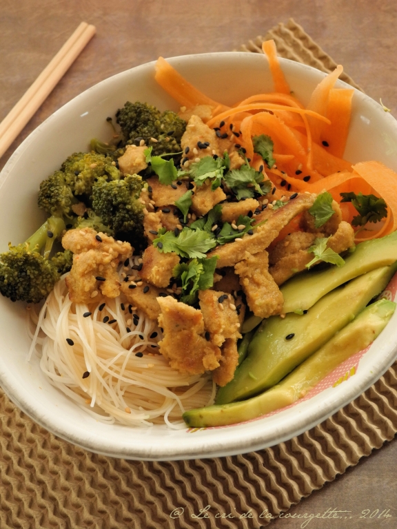 Bo bun à l’émincé de lupin Mar 19, 2014 // Entrées froides, Le salé..., Légumes & Cie, Les "sans"..., Salé, Salé, Salé, Sans gluten, Sans lactose & caseine, Sans oeufs, Tofu, tempeh, ..., Toutes les recettes bio // Cécile Lorillon– Ce midi c’est salade vietnamienne à l’émincé de lupin !