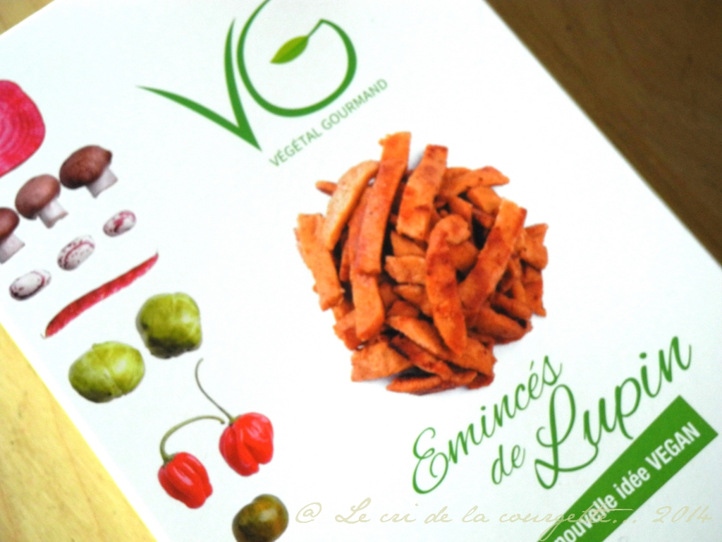 C’était pas gagné avec ce loustic là !! Quand à mon avis sur cette nouvelle expérience culinaire, je dois dire que les préparations à base de lupin de la marque Végétal Gourmand sont très sympa. C’est bon, ça change des produits à base de soja. Les préparations sont originales (gyros, émincés, filets, terrinades, saucisses cocktail…) et l’émincé que nous avons goûté est équilibré en terme de saveurs et j’ai vraiment aimé la Terrinade au chili tartinée sur un bon pain frais.