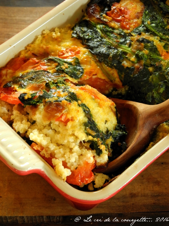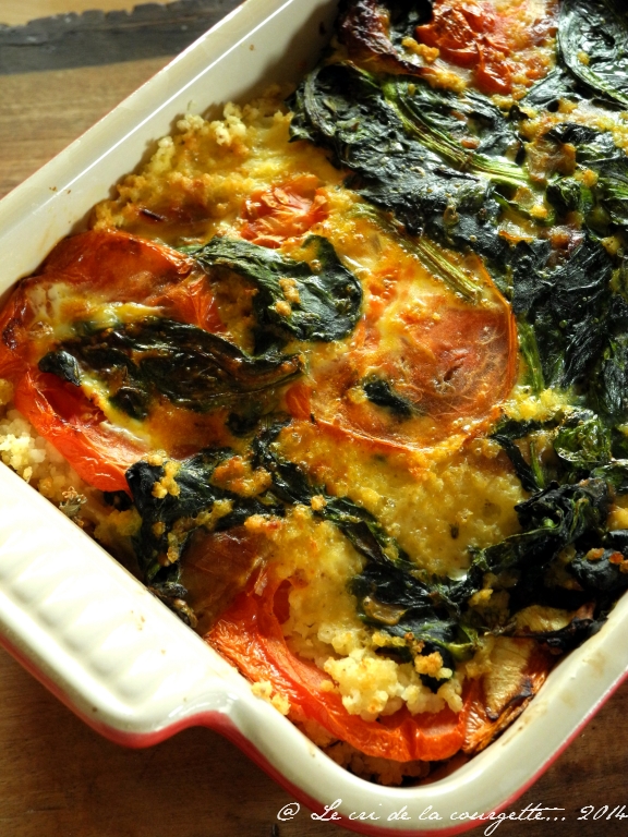Gratin de millet aux épinards Juin 19, 2014 // Céréales & légumineuses, Le salé..., Légumes & Cie, Salé, Salé, Sans gluten, Sans lactose & caseine, Toutes les recettes bio // Cécile LorillonIl y a des céréales auxquelles on ne pense pas forcement, parce qu’on en entend très peu parler, que peu de recettes nous sont proposées dans les magasines et autres médias et qu’il faut faire l’effort d’aller les chercher au bout du bout du rayon des céréales. Et, pour moi, le millet est de celles-là. Cela faisait des semaines que j’avais le paquet en attente dans ma réserve et pas forcement l’inspiration. Et puis, je me suis dit que le plus simple serait justement de commencer par un plat facile à réaliser et sans surprise, un petit gratin sans prétention mais qui permettrait justement de révéler la saveur du millet.