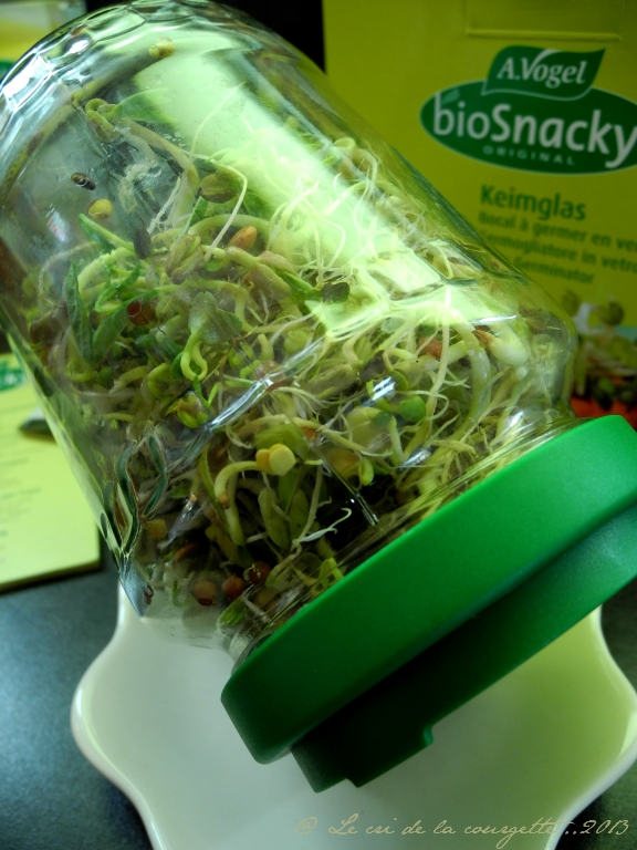 Et puis, une fois les graines germées on place le bocal peu encombrant dans le réfrigérateur pour pouvoir les conserver un plus longtemps.