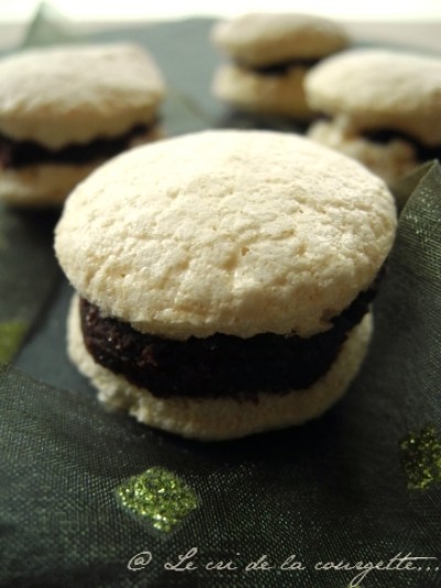 Meringuettes à la ganache au chocolat Parfois certaines recettes prennent vie à partir d’une recette ratée. Et, pour cette recette de sandwichs de meringues à la ganache au chocolat tout le secret est dans le ratage de la meringue !