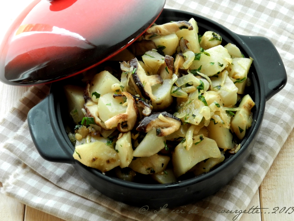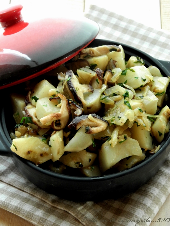 Poélée de topinambours aux shiitakés Jan 17, 2014 // Le salé..., Légumes & Cie, Les "sans"..., Salé, Salé, Salé, Sans gluten, Sans lactose & caseine, Sans oeufs, Toutes les recettes bio // Cécile LorillonLe Shiitaké est un champignon connu chez nous sous le nom de Lentin du chêne. Pour tout vous dire j’ai acheté des « Shiitakés » français dans mon magasin bio, mais je ne sais pas si j’aurais tenté le coup si j’avais lu « Lentin du chêne ». Certains noms aux assonances exotiques font tout de même plus rêver que d’autres bien français ! Mais, tout cela ce n’est qu’une question d’habitude finalement et nos amis japonais auraient peut-être les yeux qui brillent en lisant « Lentins du chêne » sur leurs étalages de champignons ! Bref, je suis revenue heureuse avec mes Shiitakés, qui n’ont de japonais que le nom (et l’origine, ok…), et je les ai gentiment fait sauter avec de très français topinambours. L’entente a été plus que cordiale et le résultat à la hauteur de l’exigence des mes papilles !