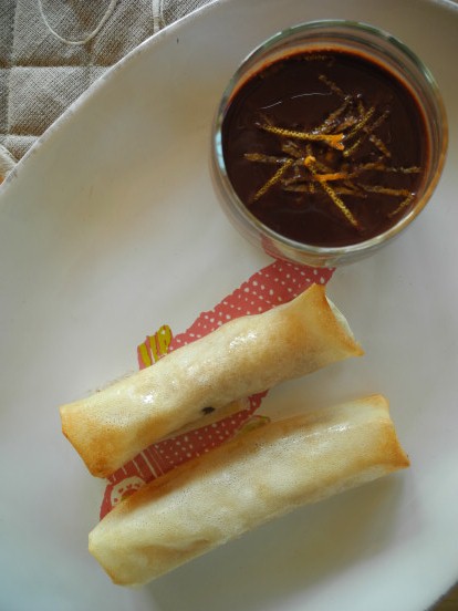 6. Servez ces rouleaux d’automne tièdes avec la sauce choco – mandarine.