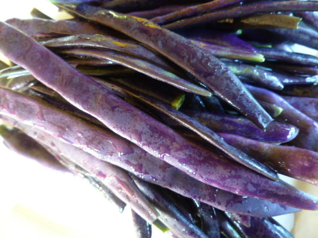 Salade de boeuf « Thaï » aux haricots violets Août 22, 2011 // Entrées froides, Le salé..., Les "sans"..., Salé, Salé, Sans gluten, Sans lactose & caseine, Toutes les recettes bio, Viandes, oeufs // Cécile LorillonDans mon potager je suis en pleine récolte de haricots violets bio « blauhilde ». Ces haricots violets, proviennent d’une variété ancienne de haricots à rame mangetout à causse violette. Les plants sont très productifs et, seulement quatre ou cinq pieds permettent de faire de belles cuisinées. Malheureusement, leur belle couleur se perd à la cuisson. Il n’en restent pas moins fondants et goûteux. Dans cette salade de boeuf « Thaï » les haricots violets composent avec la roquette et sont goût poivré. Ils apportent à la salade de boeuf un fond doux amer qui s’équilibre avec la sauce « Thaï ». Une salade à manger tiède ou froide pour un repas léger d’été.
