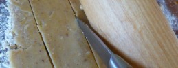 3. Beurrez et farinez un moule à tarte ou un cercle à pâtisser. Étalez la pâte sur un plan farinez, puis disposez-la dans le moule. (Pour vous faciliter la tâche, faites d’abord un disque dans la pâte de la dimension du fond du moule, enroulez-le autour du rouleau et disposez-le dans le moule à tarte. Puis, découpez une bande de la largeur de la bordure du moule, et placez-la ensuite dans le moule. Pour terminer soudez le fond de pâte avec la bordure).