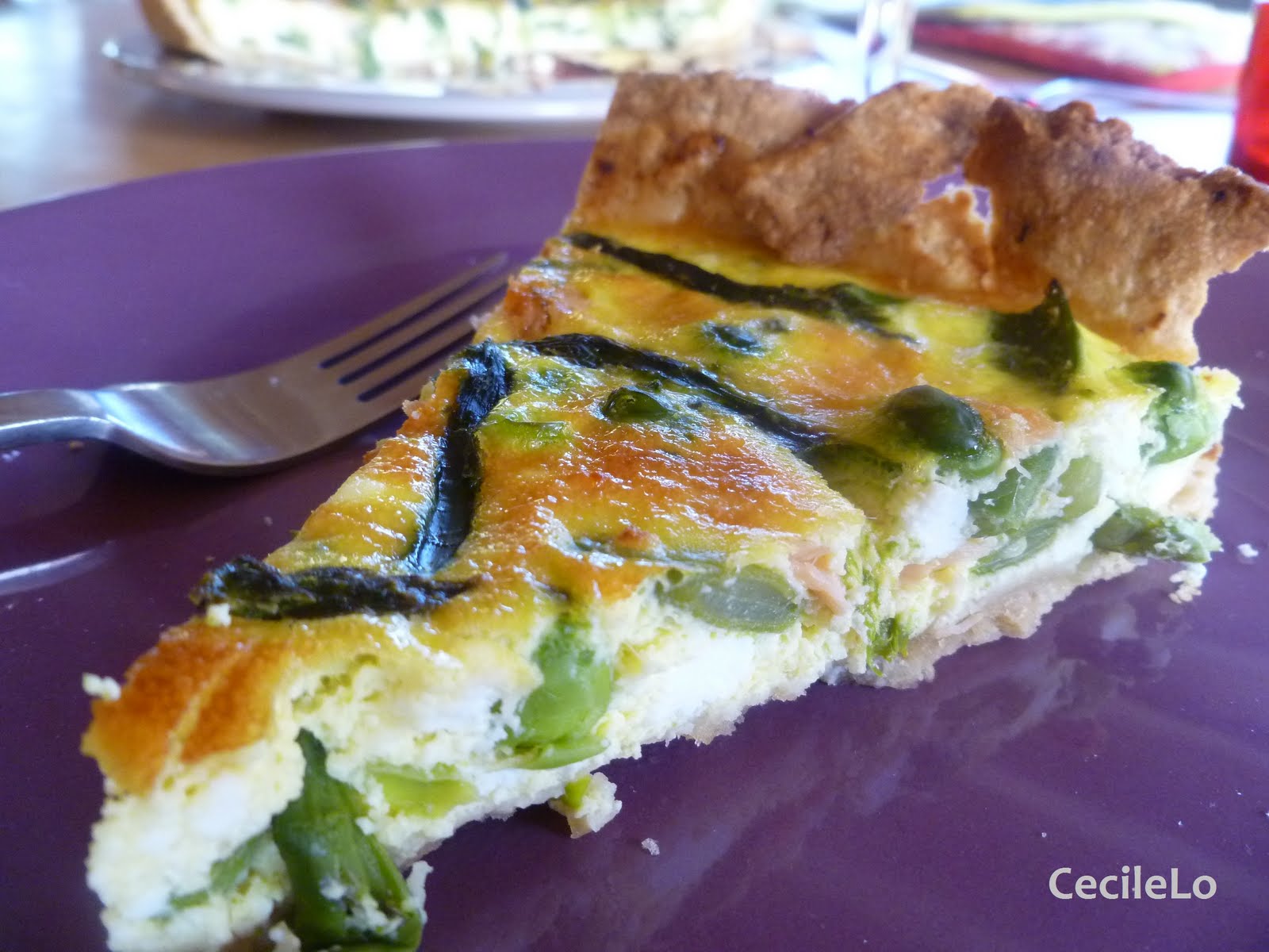 Tarte verte à la brousse et à la truite fumée, pâte brisée pimentée Mai 28, 2011 // Le salé..., Pâtes à tarte, Pâtes à tarte salée, Tartes, cakes, tartines... // Cécile LorillonCe week-end j’ai eu envie d’une bonne tarte printanière, à déguster dans le jardin, entourée de toutes les belles nuances de vert que la nature peut nous proposer ! A cette saison le vert est partout, et nos maraîchers nous offrent de biens beaux légumes à cuisiner. Les couleurs des étals du marché se parent de tous les verts : vert tendre, vert anis, vert olive, pistache, amande, tilleul… Dans mon panier du marché j’ai donc ramené du vert : de jolies petites asperges, des haricots coco bien tendres et de belles cosses de petits pois, pour faire une belle tarte au couleurs du printemps.