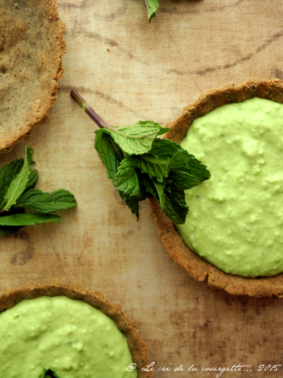 Tartelette à la mousse de petits pois, chèvre et menthe {sans gluten, sans oeuf} Avr 17, 2015 // Entrées froides, Le salé..., Légumes & Cie, Les "sans"..., Salé, Salé, Sans gluten, Sans oeufs, Toutes les recettes bio // Cécile LorillonLes anglais n’ont pas vraiment tort d’associer les petits pois et la menthe, c’est très bon ! La fraîcheur et le piquant de la menthe relèvent la douceur du petit pois. Mais, pour obtenir un plat avec un peu plus de caractère encore je me suis dit que posé sur un fond de tarte au sarrasin notre mousse de petits pois ne pouvait qu’être excellent. Cette farine sans gluten au goût prononcé est parfaite pour réaliser une base et soutenir la douceur de notre association petits pois, chèvre et menthe.