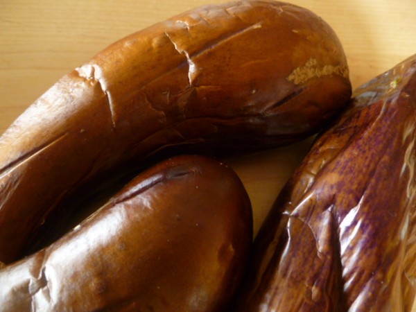 Tartinade d’aubergines au sésame {Baba Ghanoush} Nov 07, 2011 // L'apéritif, Les "sans"..., Salé, Salé, Sans gluten, Sans lactose & caseine, Toutes les recettes bio // Cécile LorillonJ’ai découvert, dans mon potager de jolies petites aubergines cachées sous les feuilles, bien à l’abri du vent d’automne. Je les ai donc vite cueillies avant qu’elles n’attrapent froid et j’ai réalisé avec, une crème d’aubergine à tartiner, appelée Baba Ghanoush. Cette préparation originaire du Liban fait partie du traditionnel mezzé qui réunit famille et amis autour de la table au Moyen-Orient. Le Baba Ghanoush s’étale sur du pain, de la pita ou peut faire office de dip avec des bâtonnés de légumes.