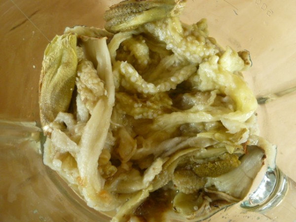 2. Sortez les aubergines du four et ouvrez-les. Prélevez la chair et placez-la dans le mixer avec le tahin, l’huile d’olive, le jus du 1/2 citron et la gousse d’ail pelée et dégermée. Mixez le tout jusqu’à obtenir une crème homogène.