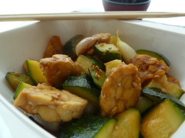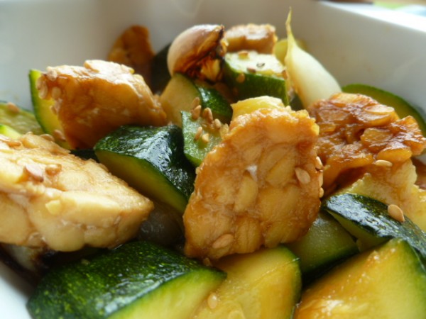 Tempeh sauté aux courgettes et au sirop d’érable Juin 10, 2012 // Le salé..., Légumes & Cie, Les "sans"..., Salé, Salé, Sans gluten, Sans lactose & caseine, Tofu, tempeh, ..., Toutes les recettes bio // Cécile LorillonLeçon du jour n°1 : il est toujours bon de dépasser ses a prioris.